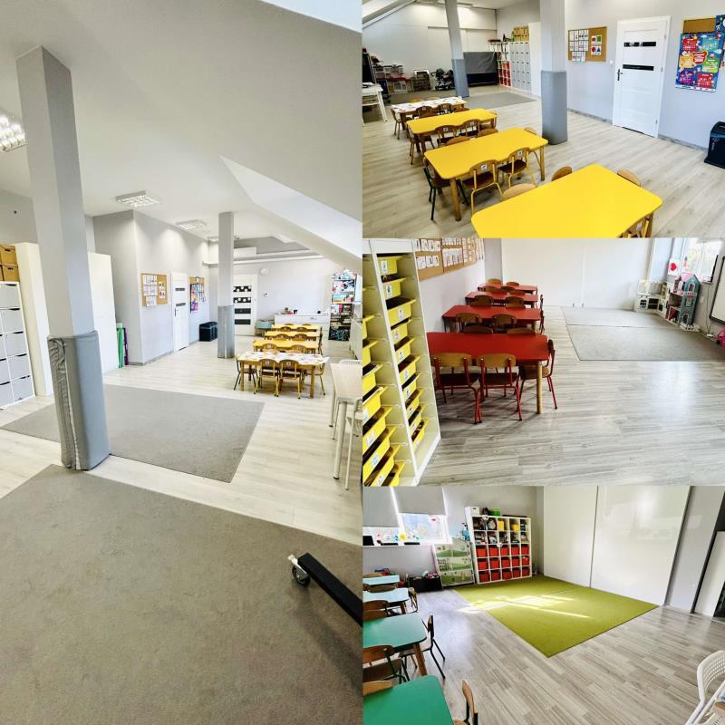 Nasze przedszkole zostało zaprojektowane tak, aby wspierać wszechstronny rozwój dzieci w komfortowych i bezpiecznych warunkach. Dysponujemy: 5 klimatyzowanymi salami dydaktycznymi, dostosowanymi do wieku i potrzeb dzieci, gabinetem logopedycznym, gabinetami terapeutycznymi oraz salą Integracji Sensorycznej.