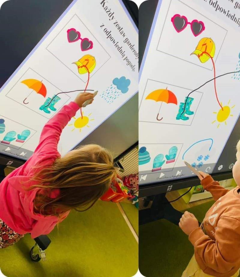 Podczas zajęć dzieci korzystają również z nowoczesnych technologii edukacyjnych, takich jak: monitory interaktywne, multimedialna podłoga interaktywna, projektory. Dzięki temu rozwijają kompetencje cyfrowe w sposób bezpieczny, świadomy i dostosowany do wieku.